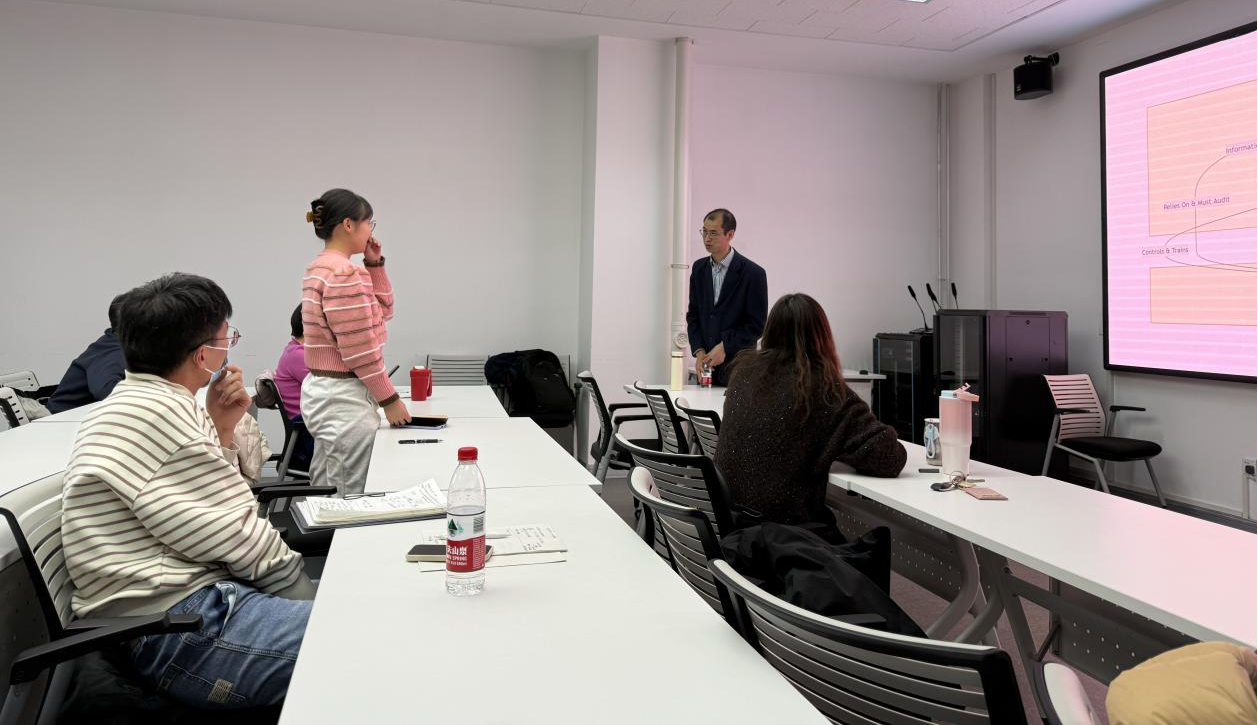 报告的尾声,王教授采用开放式对话的方式与在场师生深入互动,参会师生就汇报过程中的疑问与心中的困惑和王教授进行了充分的交流和讨论,并得到了细心的解答。通过互动,王教授进一步指出了人工智能在当前会计研究中的应用边界与挑战,并强调人工智能虽提升研究效率,但仍是一把“双刃剑”,需要深入挖掘其背后的技术逻辑。现场讨论氛围热烈,师生纷纷表示受益匪浅。